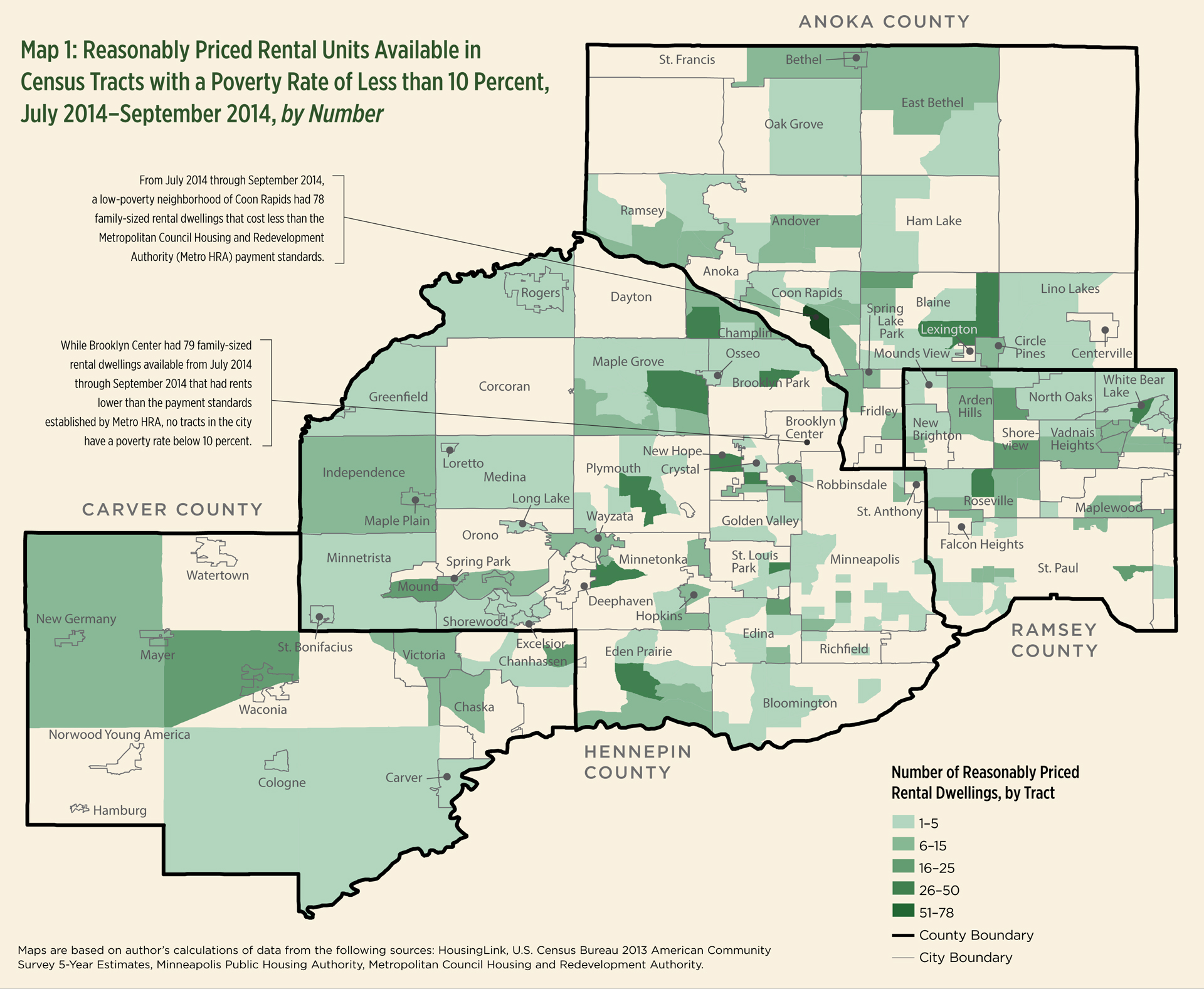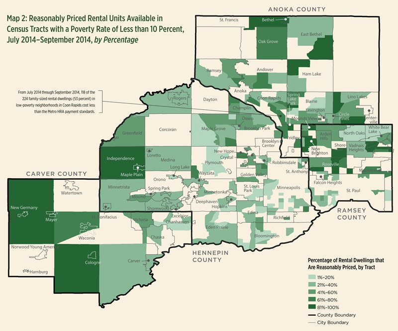 Earlier this year, Metro HRA announced the creation of its own program to help Section 8 HCV recipients move out of areas of concentrated poverty and into areas of opportunity. According to Terri Smith, the HRA manager, the Mobility Counseling Program is part of the Metropolitan Council’s broader goal of pursuing equity among residents within its seven-county regional boundary.[9]