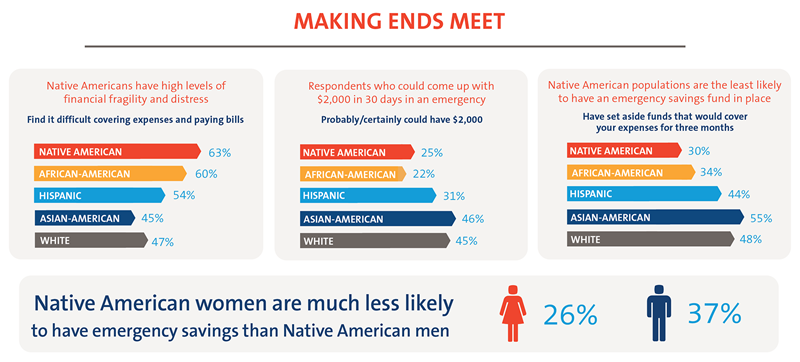 According to the report, titled Race and Financial Capability in America: Understanding the Native American Experience, American Indian and Alaska Natives (AIAN) face difficult financial circumstances and experience high levels of financial fragility, even relative to other minority groups. First Nations Development Institute (First Nations) and the FINRA Investor Education Foundation (FINRA Foundation) published the report which provides new information about the financial knowledge, behavior, and opportunities of American Indians and Alaska Natives. This report drew upon the FINRA Foundation’s National Financial Capability Study (NFCS), one of the largest financial capability studies in the U.S. The most recent National Financial Capability Study included nearly 600 people who self-identified as American Indian or Alaska Native. This is one of the largest samples of Native American respondents in any survey addressing financial behavior.