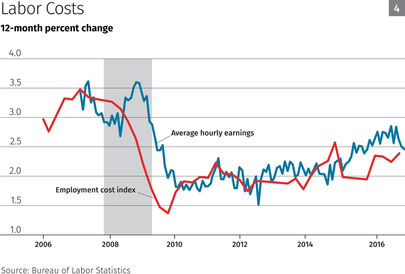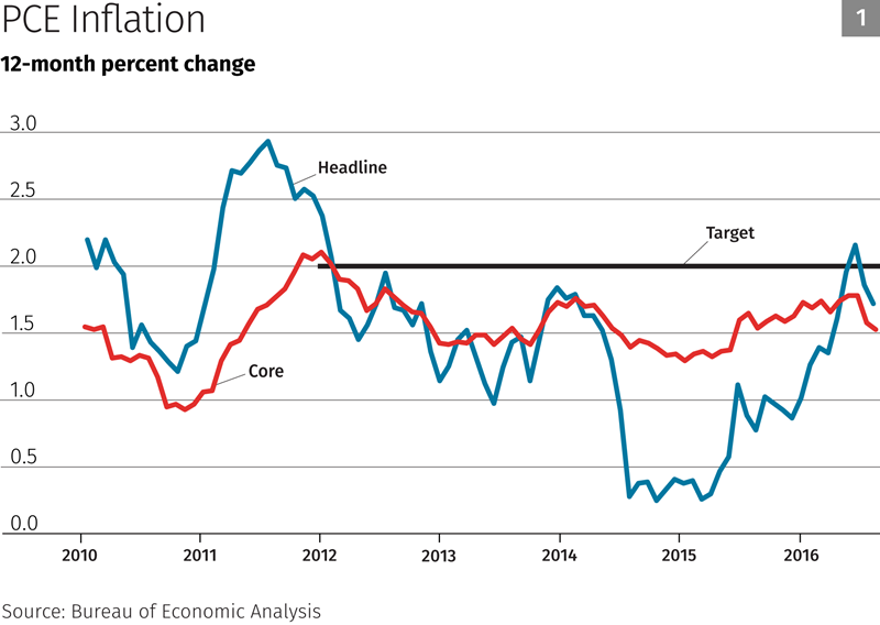 The world is large and complex. There is virtually always something concerning going on somewhere. But, overall, global economic and geopolitical risks do not seem more elevated than they have been in recent years. In fact, some global risks appear to have diminished, and the outlook for global growth is somewhat stronger than it was a few months ago. The world economy is expected to grow at 3.5 percent in 2017. Developing economies are expected to grow at 4.5 percent and advanced economies at 2.0 percent.5 While the dollar has declined modestly this year, it has increased about 20 percent over the past three years. The strong dollar will likely continue to put some downward pressure on inflation. Overall, the global environment doesn’t seem to be sending a strong signal for a change in U.S. interest rates.