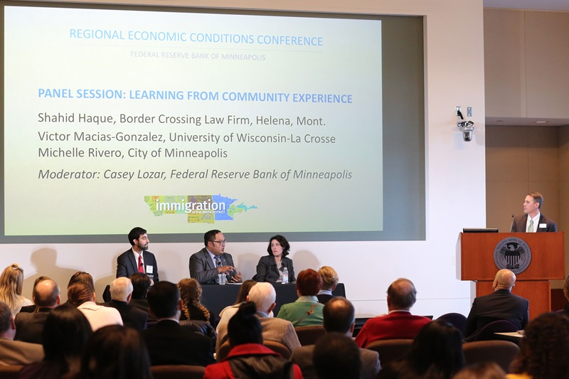 Other panelists spoke of the challenges of being an immigrant in the states of the Ninth District and the reality that one in six children in Minnesota, for instance, have immigrant parents, often accompanied by language and other cultural barriers. Access to credit, to transportation, and to homeownership are avenues to full economic integration that many immigrant communities need.