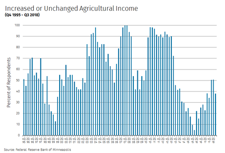 Though harvests in some areas were stalled by heavy late-season rains, crop production this year was strong, hitting records in some Ninth District states. But low crop prices and trade woes dealt a financial blow to farmers from July through September 2018, according to the Federal Reserve Bank of Minneapolis’ third-quarter (October) agricultural credit conditions survey.