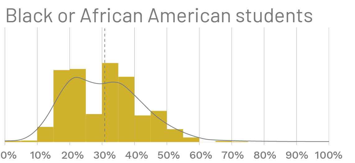 Other factors are also relevant: for example, evidence suggests that students perform better on standardized tests when they learn from teachers who share their racial and ethnic background (Learning Policy Institute 2018; Center for American Progress 2017). This may partly be because White teachers are more likely to exhibit bias against students who are not of their racial and ethnic background (Chin et al. 2020). Black students who had a Black teacher in grades K-3 were also more likely to graduate high school and enroll in college compared to those who did not (Gershenson et al. 2018), potentially due to exposure to positive role models or through reduced teacher bias.