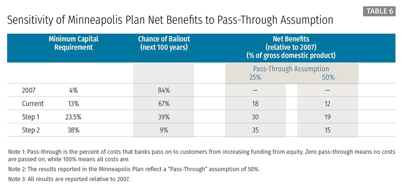 The Minneapolis Plan would increase the minimum equity capital requirement for banks with assets over $250 billion, reflecting an underlying analysis of the benefits and costs of higher capital.