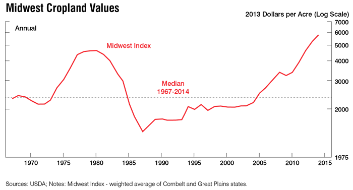 A simple graph of agricultural land values in the Midwest over time (see below) must give Ninth District readers pause for four related reasons.