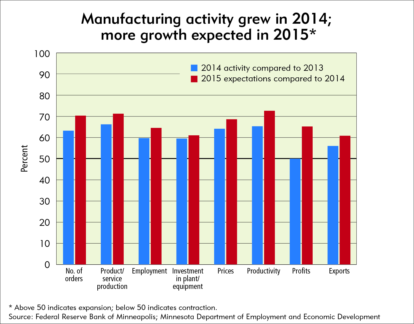 Strength in the manufacturing sector should continue into 2015, according to a survey of manufacturers conducted by the Federal Reserve Bank of Minneapolis and the Minnesota Department of Employment and Economic Development in November and early December.