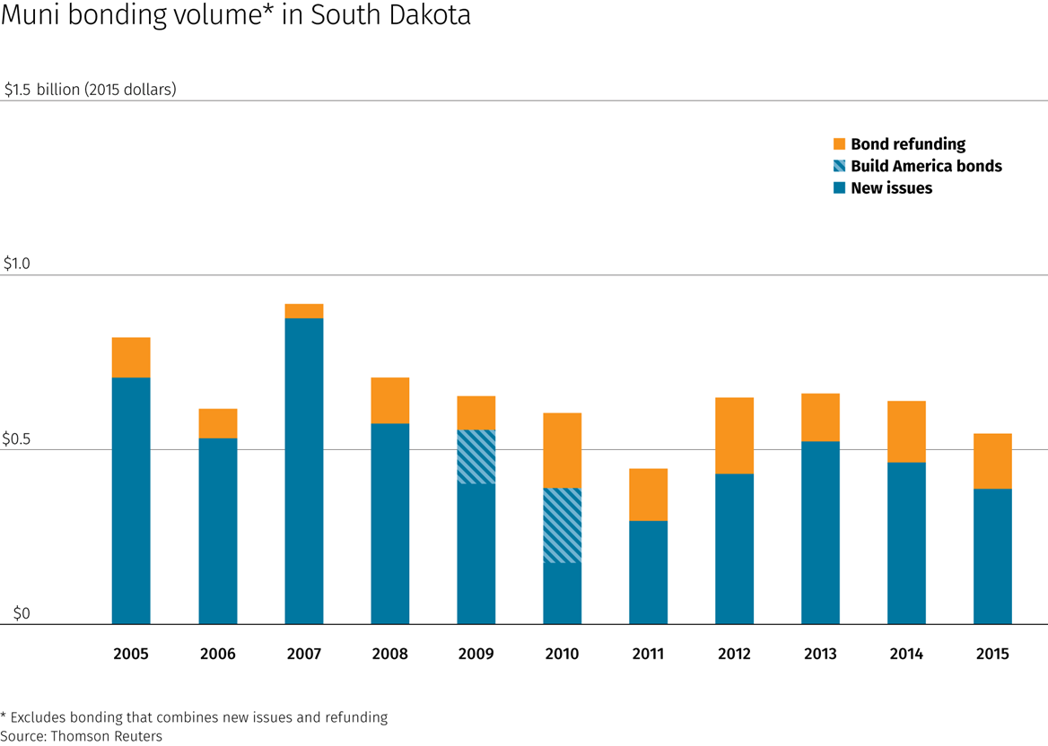 In Wisconsin, the value of new issues increased 42 percent from 2014 to 2015, to over $3.7 billion—the most new issuance since 2009. Much of that increase came from new bond debt by cities, counties, and local districts and authorities. (Thomson Reuters figures show that overall bonding by Wisconsin cities and towns rose by roughly the same proportion in 2015.)