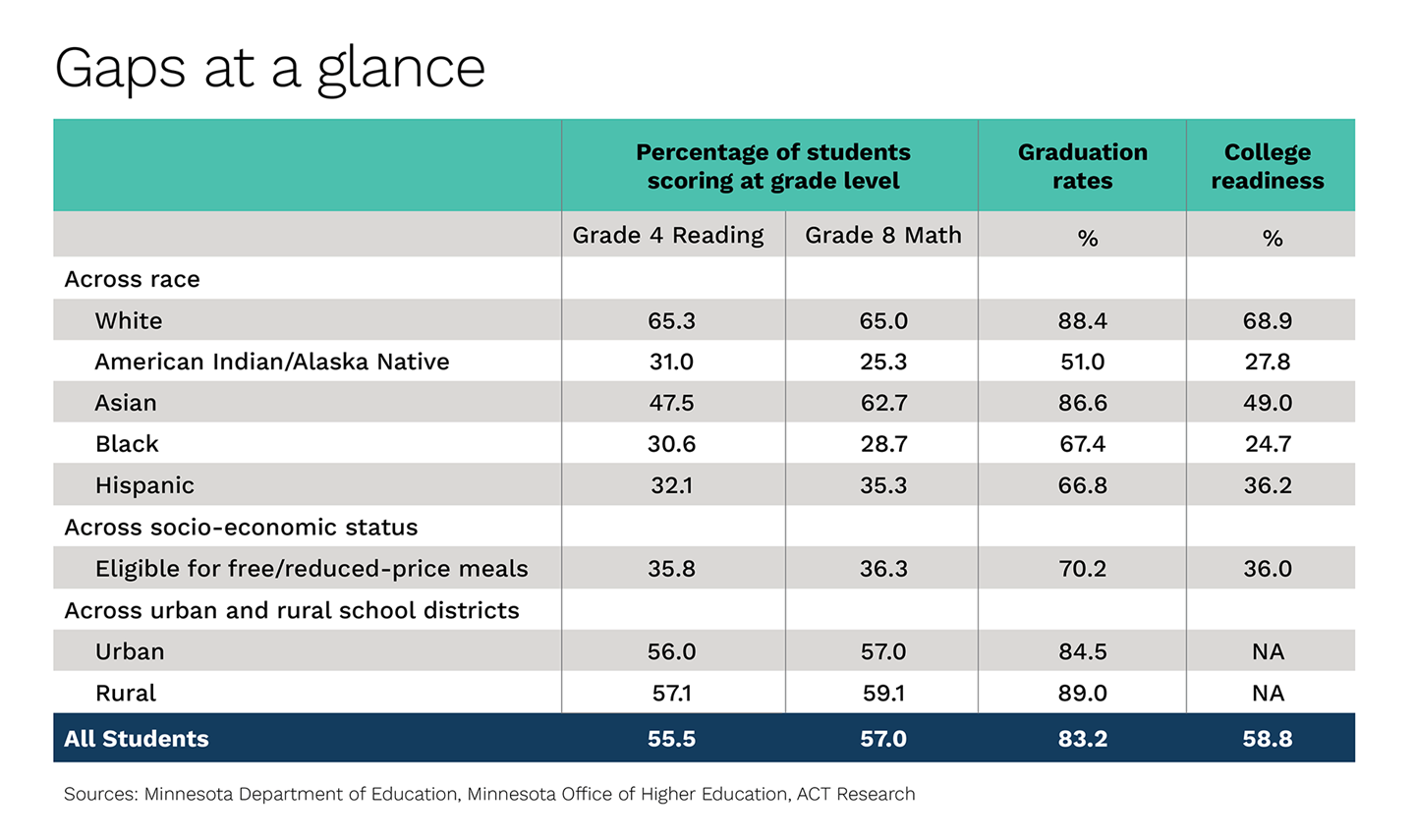 Minnesota has some of the largest gaps in the nation on outcome measures by race and socioeconomic status.